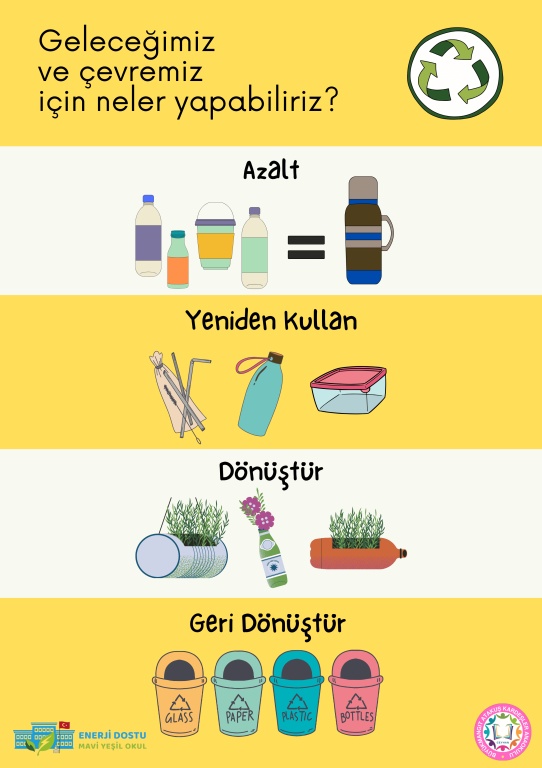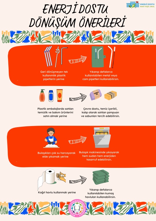 Enerji Dostu Mavi Yeşil Okul Projesi kapsamında okul müdürlüğümüzce bilgilendirici afiş ve broşürler hazırlanmıştır.